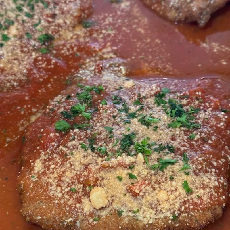 Grilled tender chicken breast topped with sautéed fresh tomatoes, onions, provolone cheese and a homemade mushroom sauce